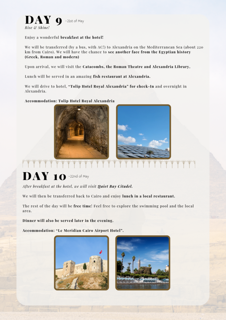 We will embark on a fully guided spiritual retreat, where we will visit some of the most powerful and transformative sites in Egypt. From the Pyramids and the Sphinx to the Karnak and Luxor temples, we will immerse ourselves in the history, mythology, and mysticism of this extraordinary land.